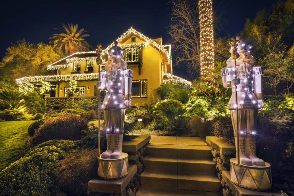 Beautiful elegant christmas lighting on a house in Pasadena, CA